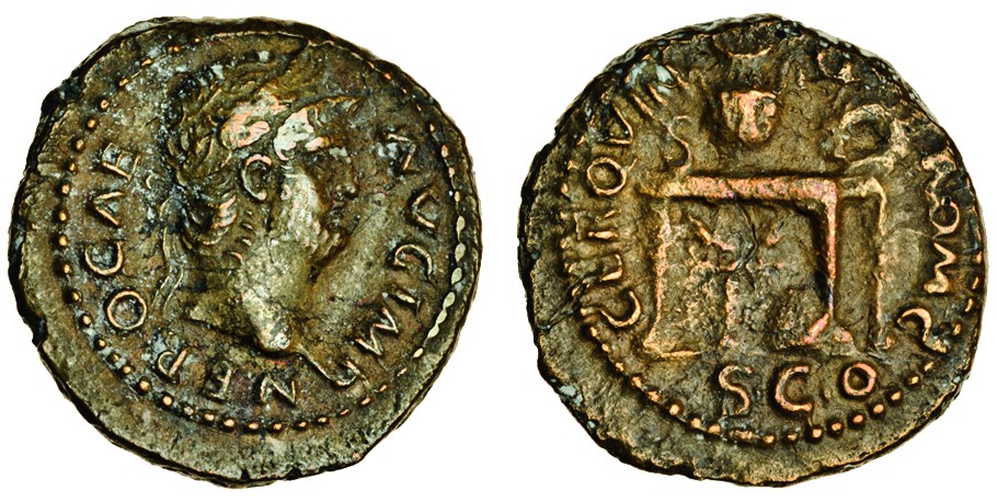 Nero (AD 54-68), AE Semis, laureate head right, nero cae-avg imp, rev. cer qvinc rom co sc, agonistic prize-table (RIC 243 var.), very fine