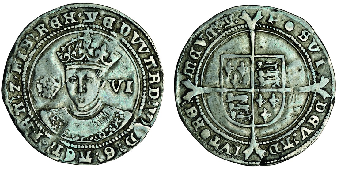 Edward VI, fine issue, 1551-53, Sixpence, 2.85g, m.m. y, crowned facing bust half left, rev. shield over long cross fourchée (N.1938; S.2483), crease, nearly very fine
