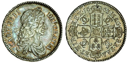 Charles II, Halfcrown, 1663 xv, first laureate, draped bust right, no stops, rev. four crowned shields cruciform, interlinked cs in angles (ESC 459; S.3361), toned, good very fine / extremely fine