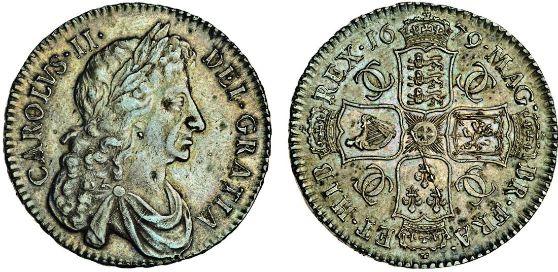 Charles II, Halfcrown, 1679 tricesimo primo, fourth laureate, draped bust right, rev. four crowned shields cruciform (ESC 481; S.3367), very fine