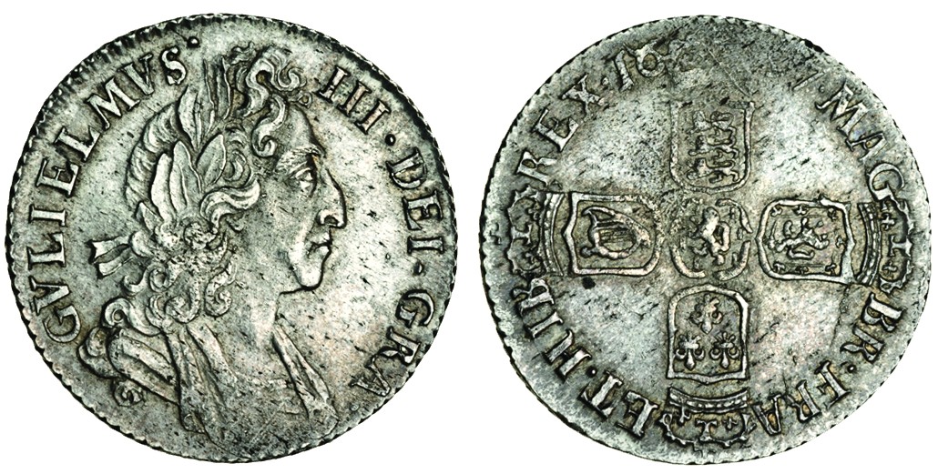 William III, Sixpence, 1697, third laureate, draped bust right, rev. four crowned shields cruciform (ESC 1566; S.3538), some weak areas, good very fine