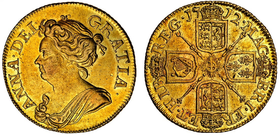 Anne, post-Union, Guinea, 1712, third draped bust left, rev. four crowned shields cruciform (MCE 224; S.3574), good very fine