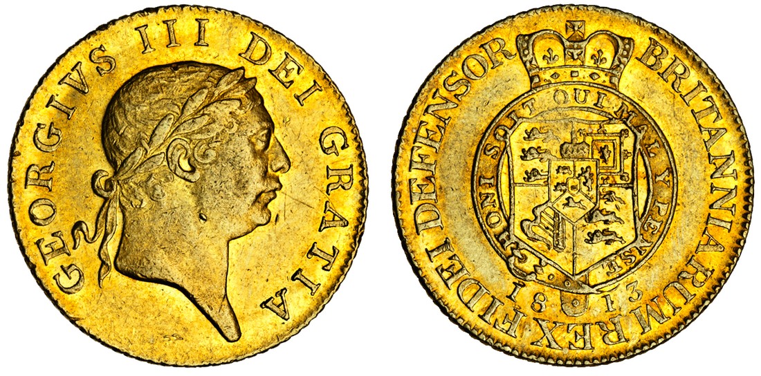 (g) George III, 'Military' Guinea, 1813, sixth laureate head right, rev. crowned shield within Garter Ribbon (MCE 404; S.3730), good very fine