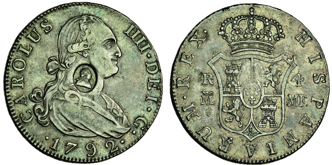 George III, emergency issue, Half-Dollar, Charles IV 4-Reales, Madrid, 1792, oval countermark (ESC 611; S.3767), good very fine, toned