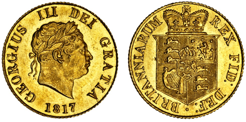 (g) George III, Half-Sovereign, 1817, laureate head right, rev. crowned shield (S.3786), mark by shield, extremely fine