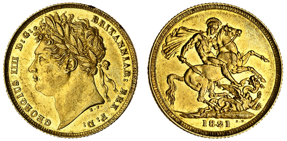 (g) George IV (1820-30), Sovereign, 1821, laureate head left, rev. St George and dragon (Marsh 5; S.3800), edge nick, lustrous, light marks on obverse, nearly extremely fine