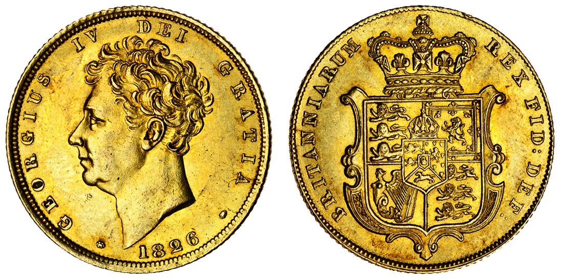 (g) George IV, Sovereign, 1826, head left, rev. crowned garnished shield (Marsh 11; S.3801), extremely fine