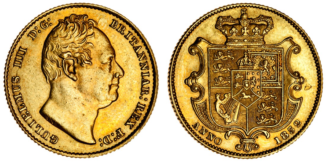 (g) William IV, Sovereign, 1832, second head right, rev. crowned garnished shield (Marsh 17; S.3829B), mark by neck, nearly extremely fine