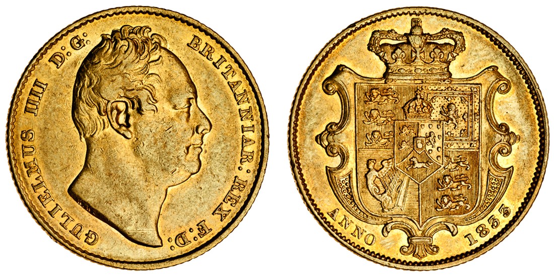 (g) William IV, Sovereign, 1833, second head right, rev. crowned garnished shield (Marsh 18; S.2829B), very fine