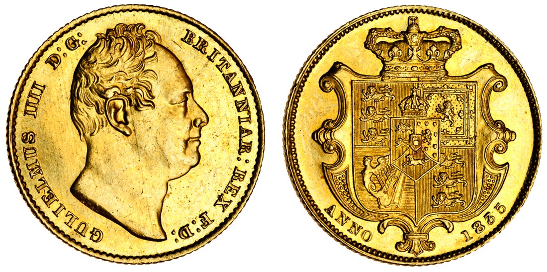 (g) William IV, Sovereign, 1835, second head right, rev. crowned garnished shield (Marsh 19; S.2829B), a few light marks on obverse, extremely fine, rare
