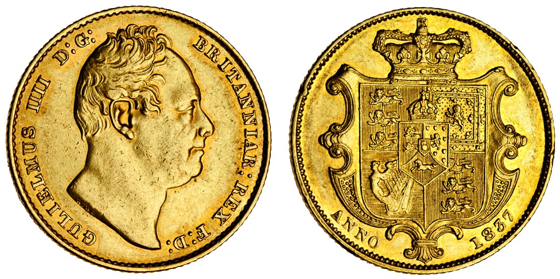 (g) William IV, Sovereign, 1837, second head right, rev. crowned garnished shield (Marsh 21; S.2829B), nearly extremely fine
