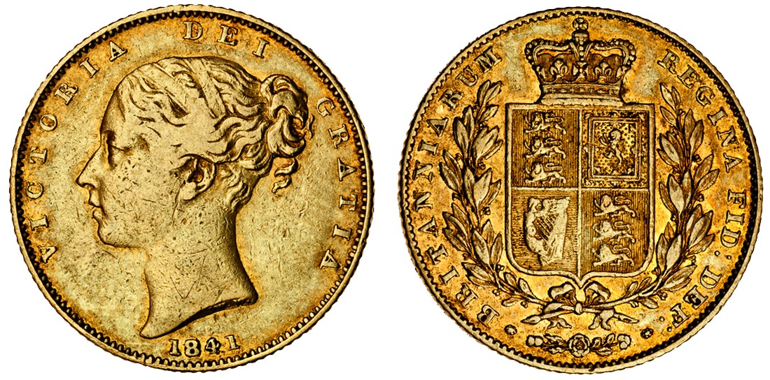 (g) Victoria, Sovereign, 1841, young head left, rev. crowned shield within wreath (Marsh 24; S.3852), fine, very rare