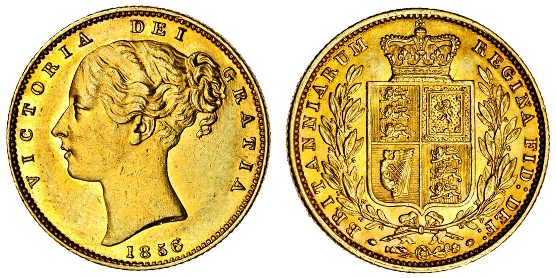 (g) Victoria, Sovereign, 1856, young head left, rev. crowned shield within wreath (Marsh 39; S.3852D), extremely fine