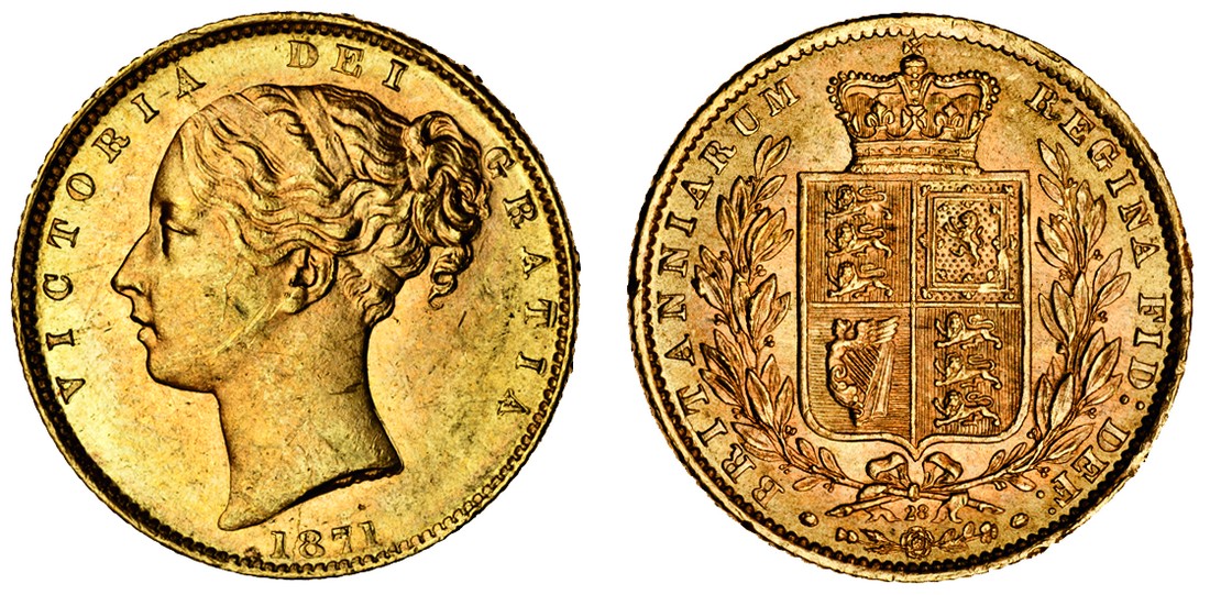 (g) Victoria, Sovereign, 1871, young head left, rev. crowned shield within wreath, die 28 (Marsh 55; S.3853B), mark on cheek, almost extremely fine