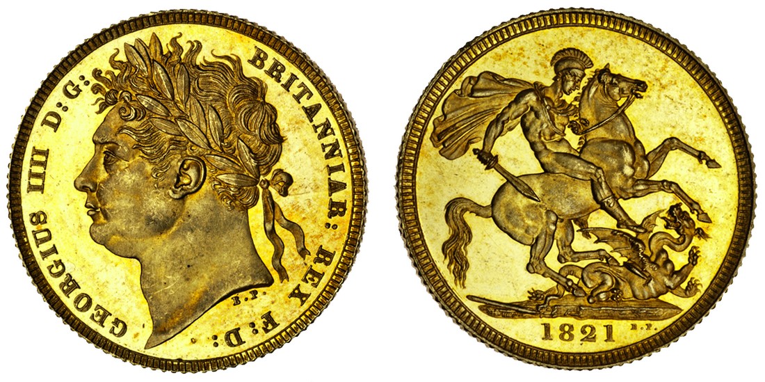 (g) George IV (1820-30), proof Sovereign, 1821, laureate head left, rev. St George and dragon (W&R 231; S.3800), light hairlines, otherwise as struck, rare