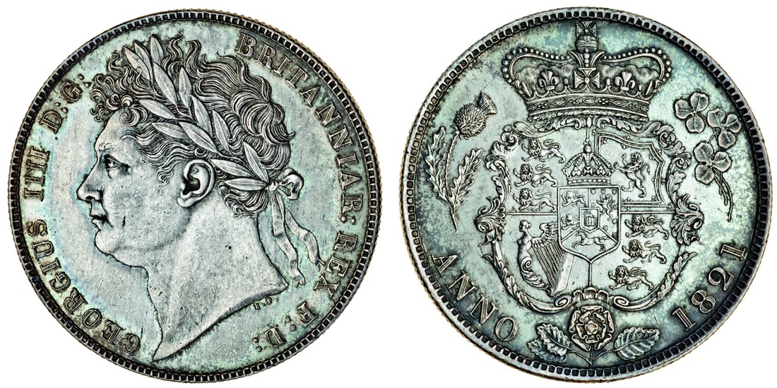 (x) George IV, Halfcrown, 1821, laureate head left, rev. crowned, garnished shield, emblems around (ESC 631; S.3807), extremely fine