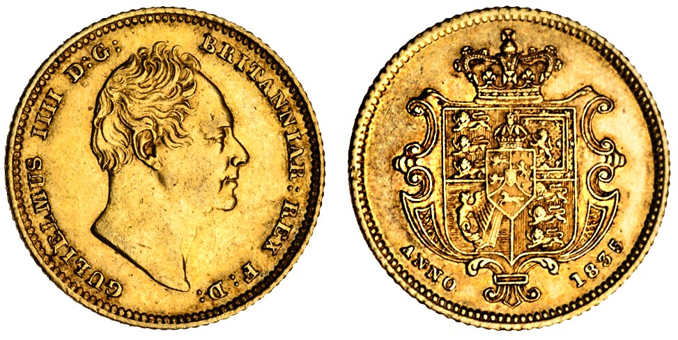 (g) William IV, Half-Sovereign, 1835, head right, rev. crowned garnished shield (S.3831), very fine