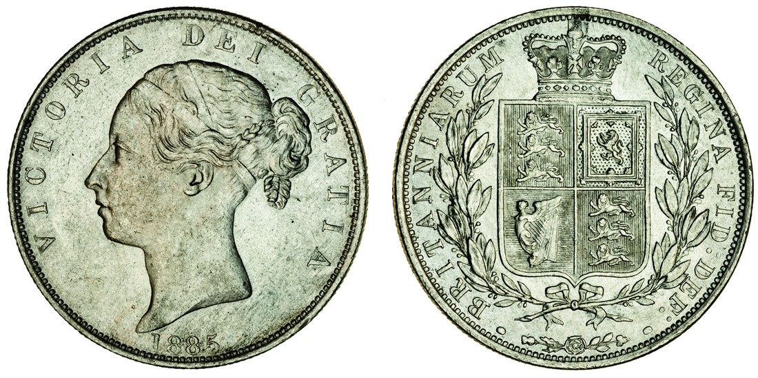 Victoria, Halfcrown, 1885, young head left, rev. crowned shield within wreath (ESC 679; S.3889), extremely fine