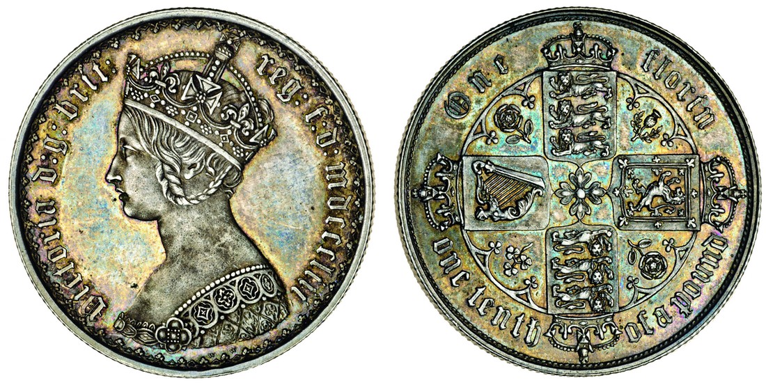 Victoria, proof 'gothic' Florin, 1853, crowned bust left, rev. four crowned shields cruciform, emblems in angles (ESC 809; S.3891), light hairlines, toned, good extremely fine