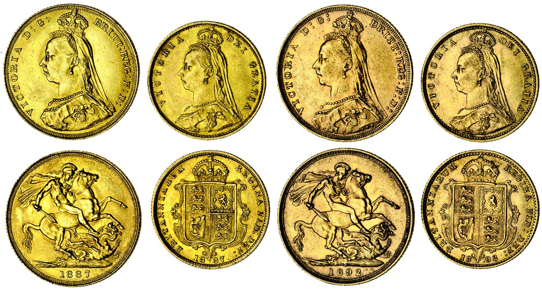 (g) Victoria, Jubilee head (4), Sovereigns (2), 1887, 1892 (S.3866, 3866C), the first good very fine, the second, fine, Half-Sovereigns (2), 1887, 1892 (S.3869; 3869D), very fine (4)