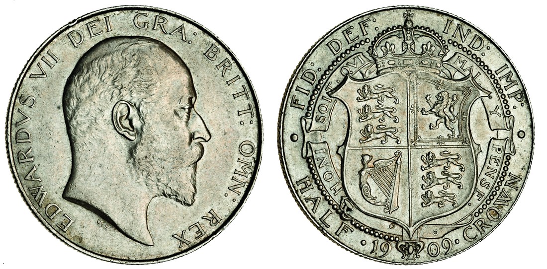 Edward VII, Halfcrown, 1909, head right, rev. crowned shields within Garter Ribbon (S.3980), nearly extremely fine