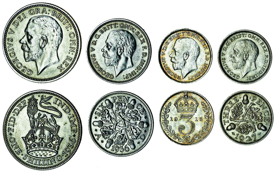 George V (4), Shilling 1936, Sixpence 1936 (S.4039, 4041), uncirculated, Threepence (2), 1916 (S.4015), uncirculated, proof, 1927 (S.4042), uncirculated (4)