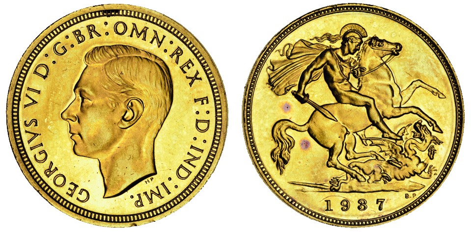 (g) George VI (1936-52), proof Half-Sovereign, 1937, head left, rev. St George and dragon (S.4077), carbon spots on reverse, light marks in fields, extremely fine