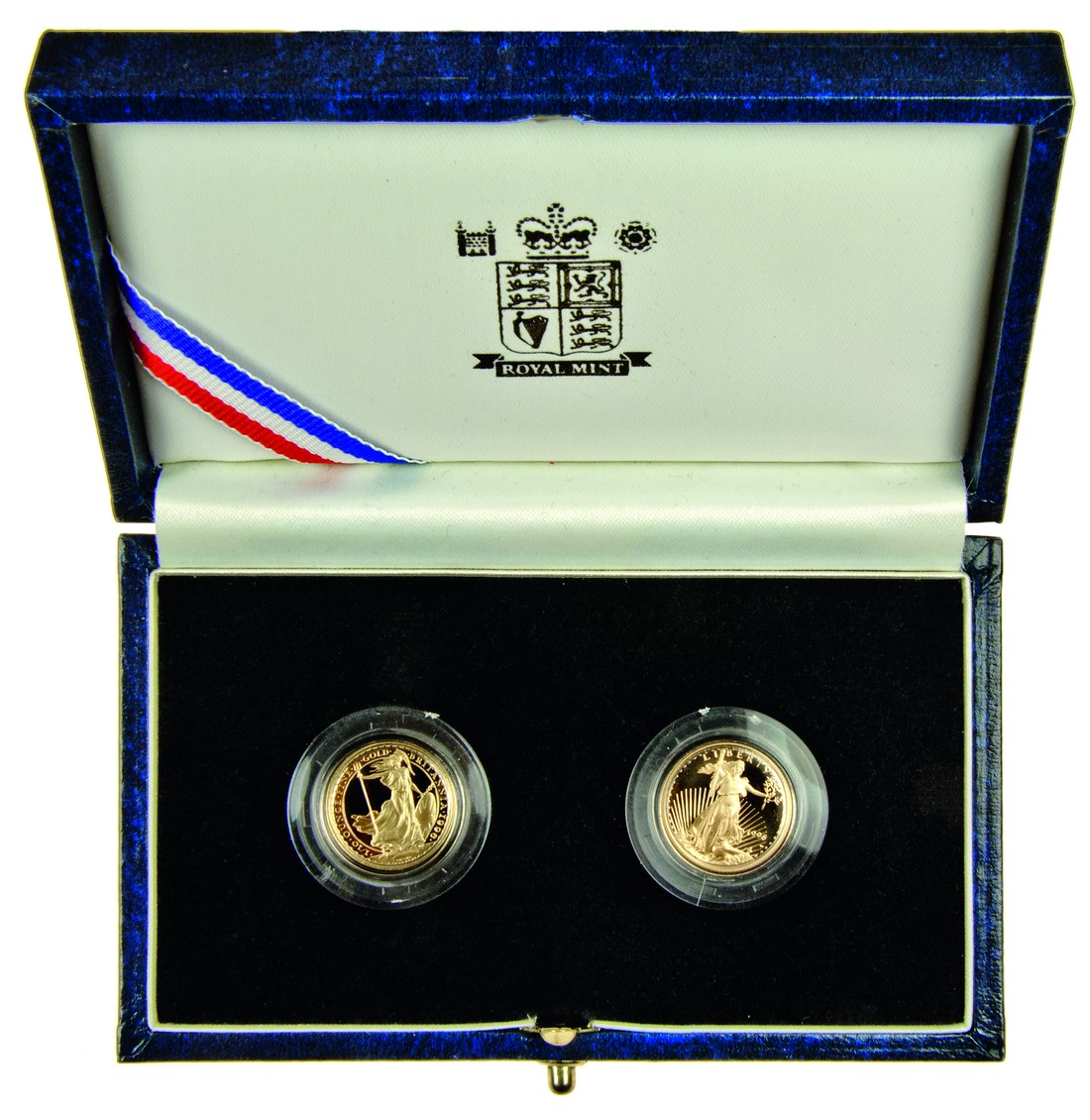 (g) Elizabeth II, 'Ladies of Freedom' gold set, 1996, gold £10 Britannia and gold $5 Dollar Liberty, brilliant mint state, in case of issue, scarce, 750 issued