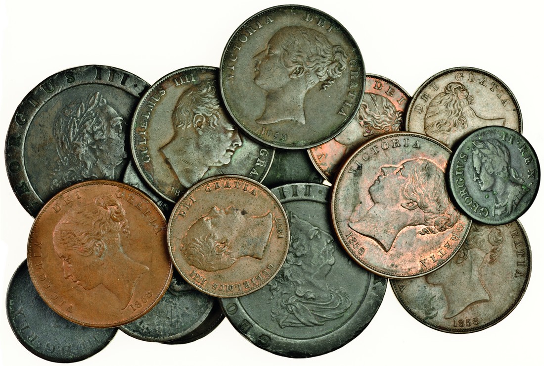 Milled copper coins (86), George III, Soho coinage, Twopence, 1797, (3) (S,3776), fair-fine, William IV, Penny, 1834, Halfpenny, 1837 (S.3846, 3857), good fine, Victoria, Pennies (4), 1853, 1858 (3) (S3948), the first, good fine, the others, very fine - good very fine, one with lustre, Halfpennies (2), 1841, 1853 (S.3949), very fine, miscellaneous others (75), poor (86)