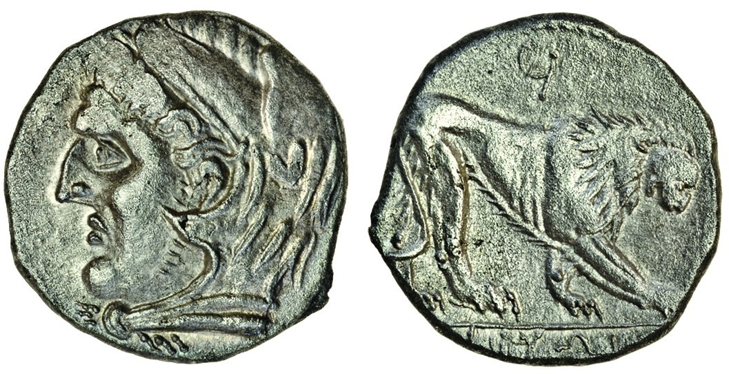 North Africa, Carthage, The Revolt of the Libyans (c.241-238 BC), Billon Shekel, 7.51g, head of young Herakles left, wearing lion's skin, rev. lion walking right, Punic letter m above, traces of ibyn in ex. (SNG Cop.240-243), unusually fine, with overall appearance of silver, good very fine