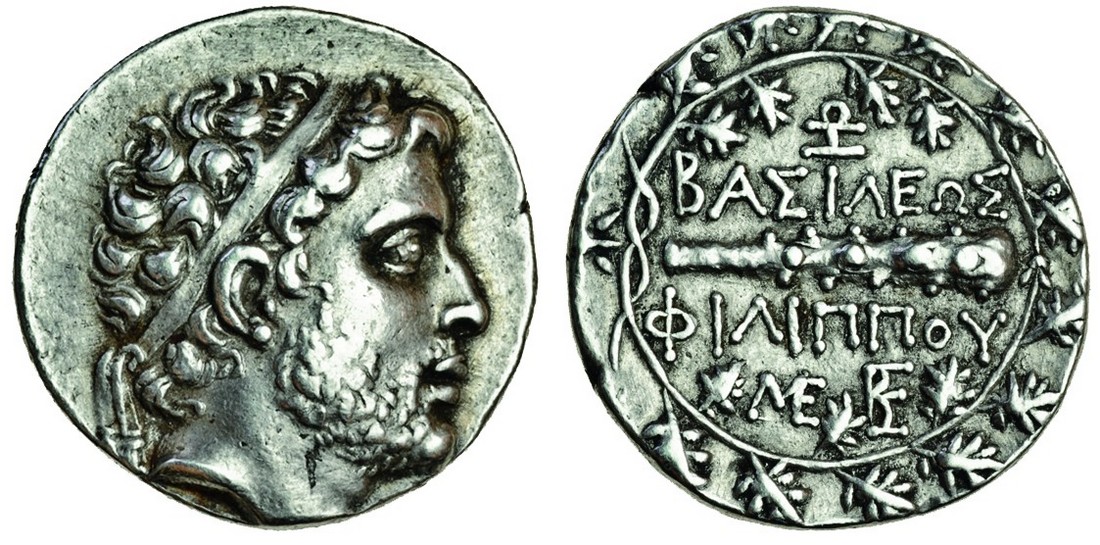 Kingdom of Macedon, Philip V (221-179 BC), AR Didrachm, 8.32g, diademed head right, rev. baie ioy, club, monogram above and two more below, all in oak-wreath, star on left (Mamroth, ZfN XL, 24), almost extremely fine