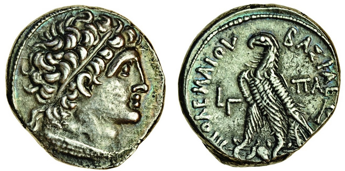 Kingdom of Egypt, Ptolemy XII (80-51 BC), AR Tetradrachm, 14.05g, Alexandria, 79/8 BC, diademed head of Ptolemy I right, aegis round neck, rev. toemaioy baie , eagle standing left on thunderbolt, date l before, a behind (SNG Cop.378), almost extremely fine