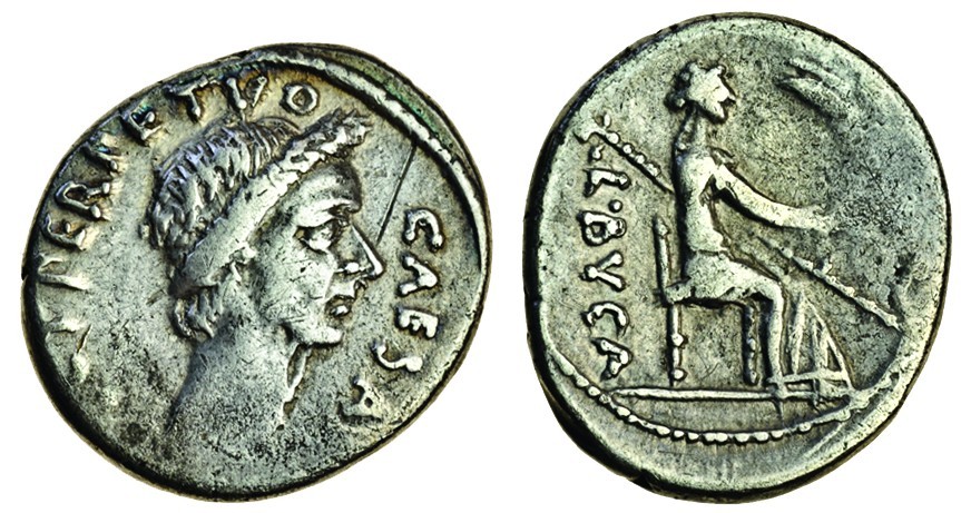 Julius Caesar († 15th March 44 BC), AR Denarius, 3.86g, moneyer L. Buca, Feb. - Mar. 44 BC, laureate head right, caesar dict perpetvo, rev. l.bvca, Venus seated right, holding Victory and sceptre (RRC 480/7b; Julia 36; Sear, Imperators, 104a), almost very fine