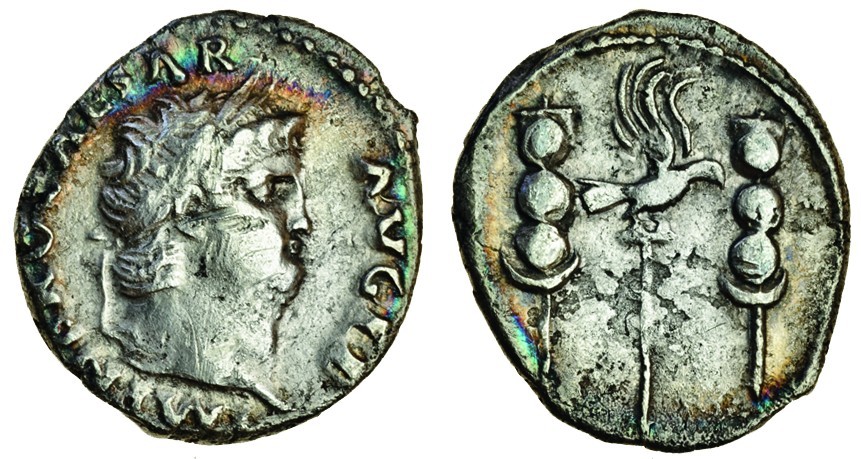 Nero (AD 54-68), AR Denarius, 3.27g, laureate head right, rev. Aquila between two standards (RIC 68; BMC 107; RSC 356), graze on cheek, area of surface erosion on reverse, very fine