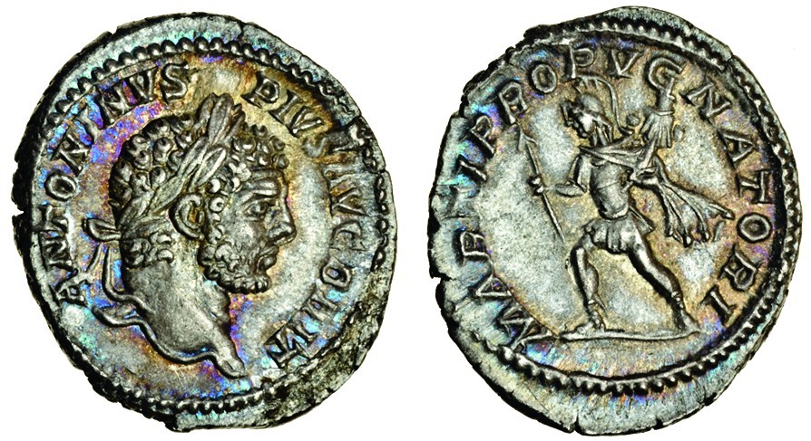 Caracalla (198-217), AR Denarius, laureate head right, rev. marti propvgnatori, Mars advancing left, holding spear and trophy (RIC 223), extremely fine, attractive old cabinet toning