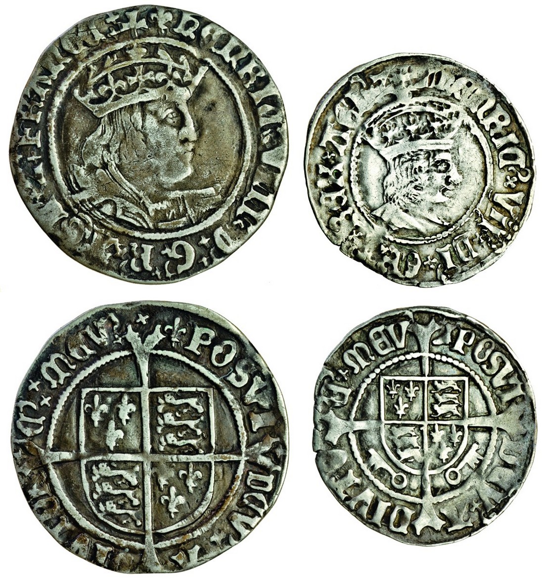 Henry VII (1485-1509), profile issue, Halfgroat, 1.51g, York, Archbishop Bainbridge, m.m. martlet, crowned bust right, rev. shield over long cross fourchée, keys below (N.1750; S.2262), double struck in places on reverse, good fine, Henry VIII, second coinage, 1526-44, Groat, 2.33g, m.m. lis, crowned bust right, Laker D, rev. shield over long cross fourchée (N.1797; S.2337E), good fine (2)