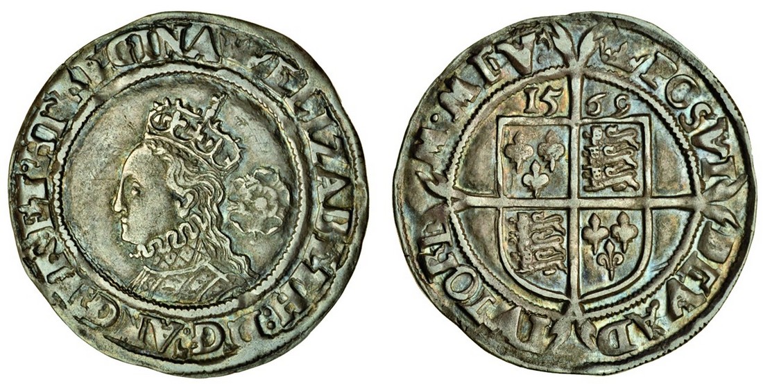 Elizabeth I (1558-1603), third and fourth issues, 1561-77, Sixpence, 2.98g, 1569, m.m. coronet, crowned bust left, rev. shield over long cross fourchée (N.1997; S.2562), toned, good very fine