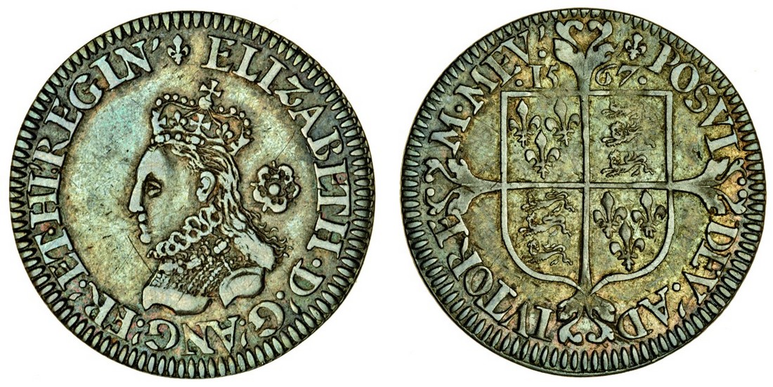 Elizabeth I (1558-1603), milled coinage, 1560-71, Sixpence, 1567, 3.07g, m.m. lis, crowned small bust left, small rose, rev. shield over long cross fourchée (Borden and Brown 38 O2/R2; N.2030; S.2599), lightly toned, very fine