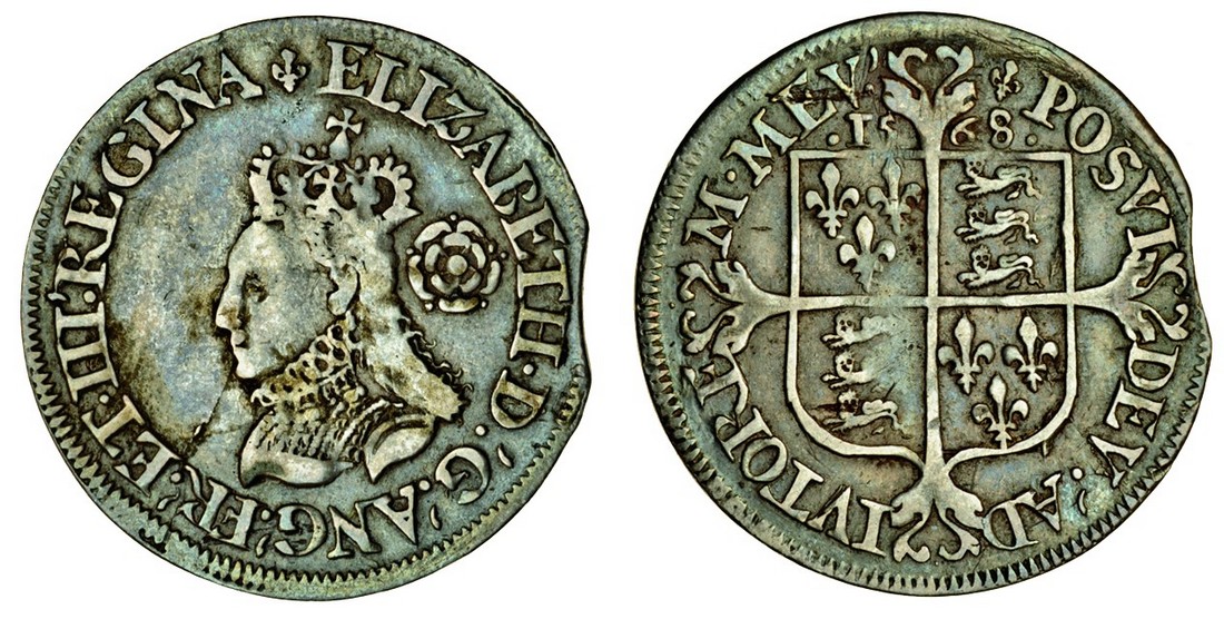 Elizabeth I (1558-1603), milled coinage, 1560-71, Sixpence, 1568, 2.94g, m.m. lis, crowned small bust left, small rose, rev. shield over long cross fourchée (Borden and Brown 40 O1/R2; N.2030; S.2599), good fine