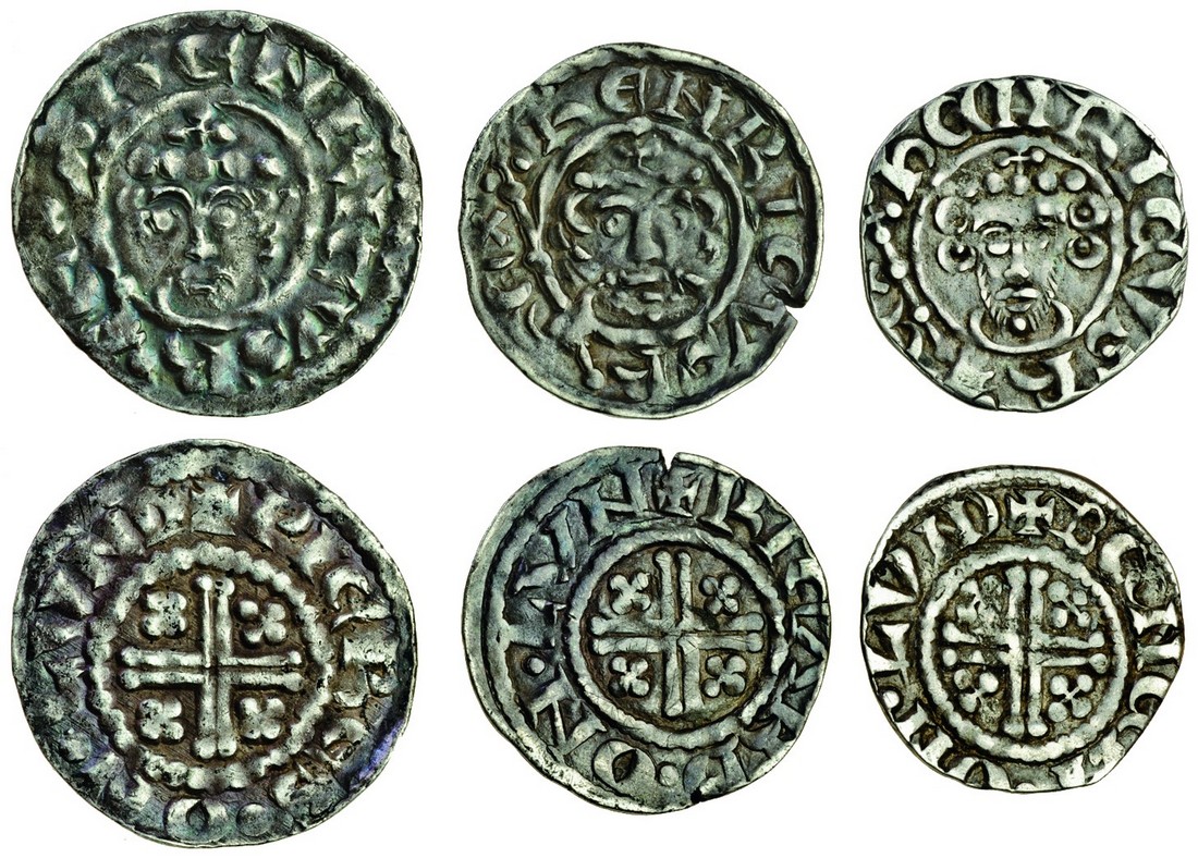 Short Cross coinage, Pennies (3), Henry II, 1.41g, class Ic, London, Pieres, +pieres.on.lvnd (N.964; S.1345), large flan, good fine, Richard I, 1.40g, class 4a, London, Ricard, +ricard.on.lvn (N.968/1; S.1348a), edge chip, nearly very fine, John, 1.15g, class 5b, London, Beneit, +beneit.on.lvnd (N.970biii; S.1351), crease, good fine (3)