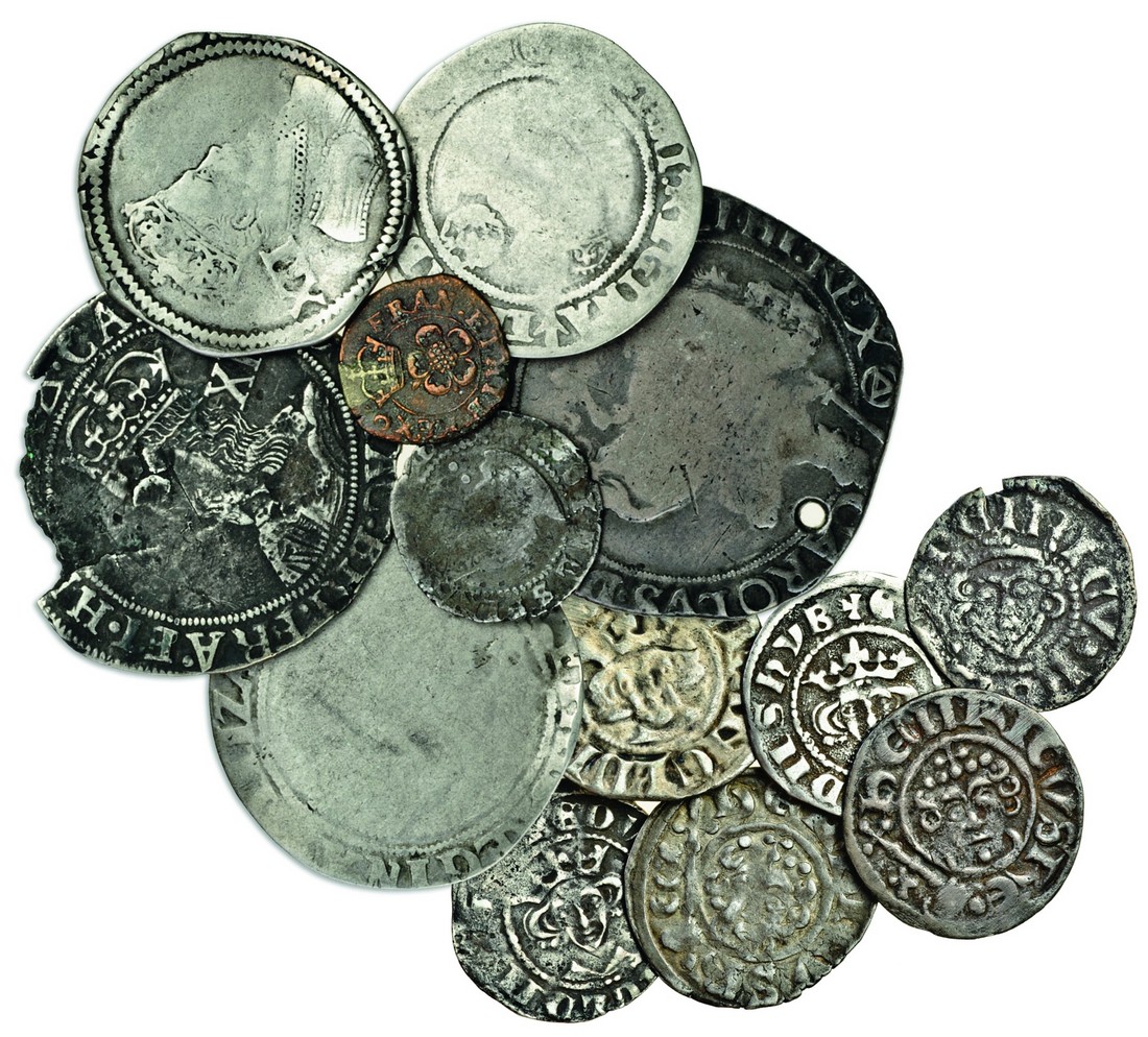 English hammered coins (13), Pennies (5), John, 1.22g, 5b/5a, , London, rev. +willem.on.lvn, good fine, scarce, Henry III (2), 1.41g, short cross, 8a, rev. +elis on lvnde (N.981; S.1357A), about fine, scarce, long cross type, fair, Edward I, long cross Penneis (3), Bristol, Bury St Edmunds, Canterbury, generally about fine - good fine, others, AR (6), AE (1), poor, one pierced (13)