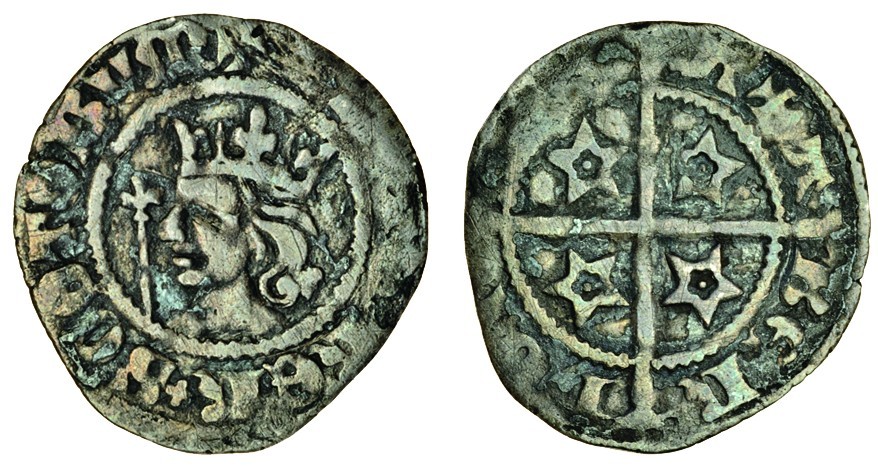 David II (1329-71), second coinage, 1357-67, Penny, 0.88g, Aberdeen, crowned head left, sceptre before, rev. villa+aberdon, long cross and mullets (S.5121), good fine, very rare
