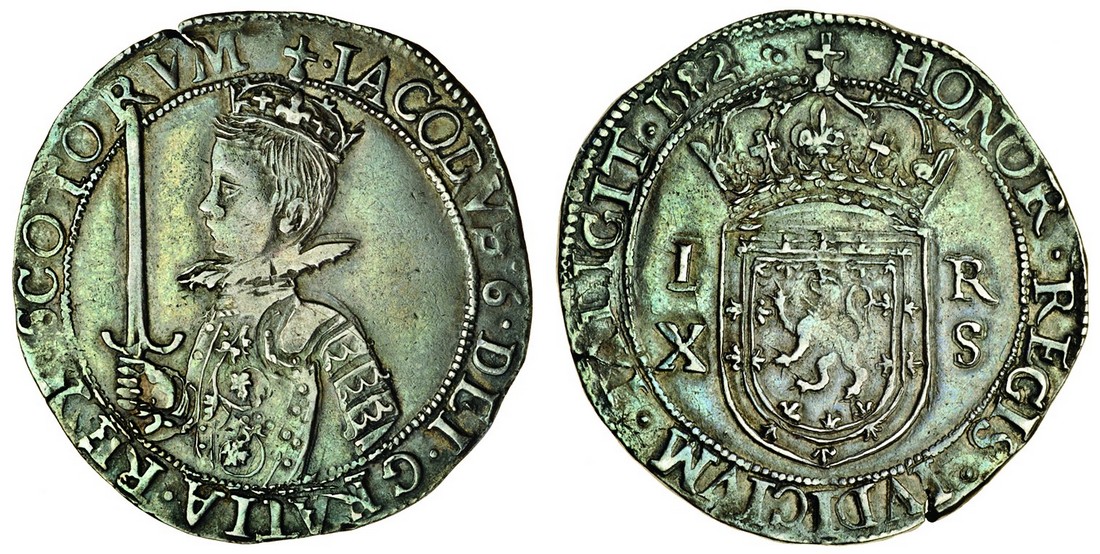 James VI (1567-1625), fourth coinage, Ten Shillings, 1582, 7.79g, 1582, half-length crowned and armoured bust of young king left, rev. crowned shield dividing i r, below x-s (S.5490), pleasing detail of armour, good very fine, rare