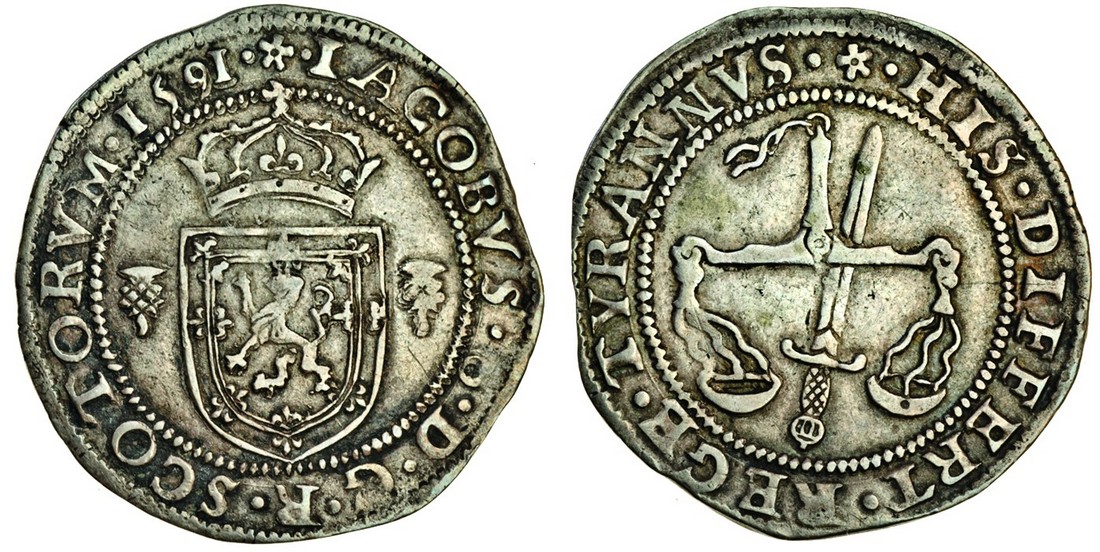 James VI (1567-1625), balance Half-Merk, 1591, m.m. cinquefoil, crowned shield, thistle head each side, rev. balance over sword (S.5491), a pleasing example, good very fine
