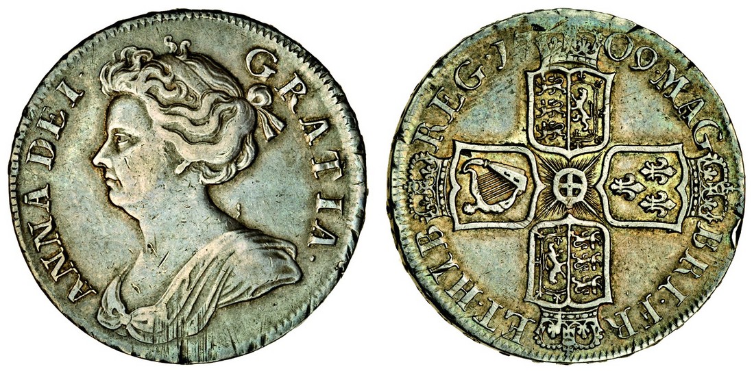 Anne (1702-14), post-Union, Halfcrown, 1709 octavo, draped bust left, , rev. four crowned shields cruciform (ESC 579; S.3604), dark tone, edge knock at four o'clock on reverse, light adjustments marks, very fine