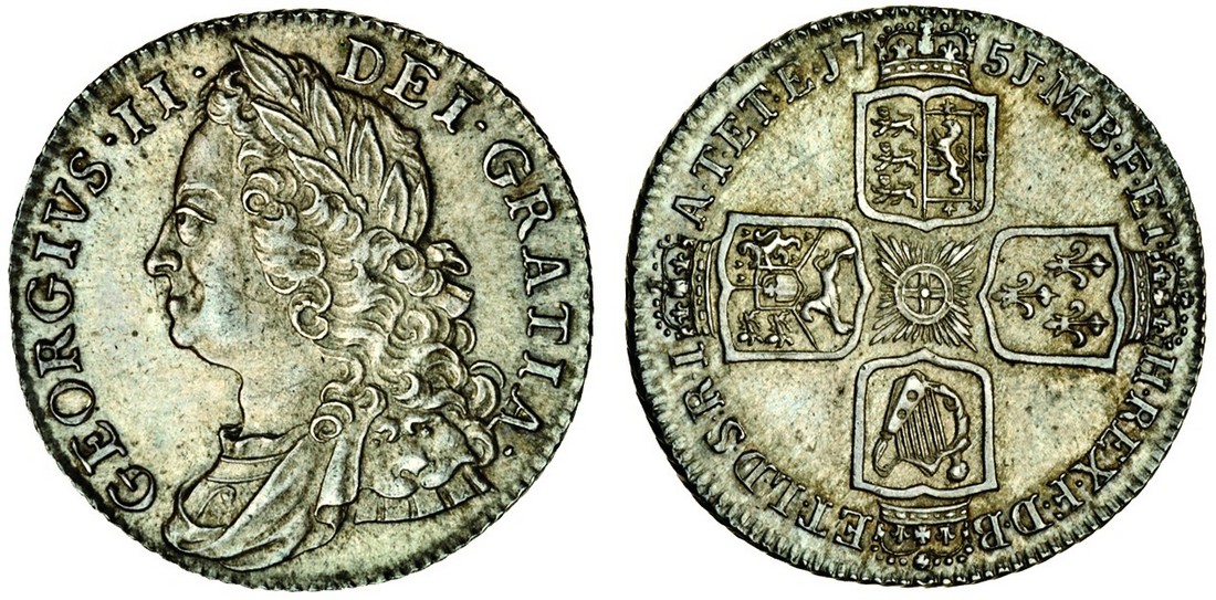George II (1727-60), Shilling, 1751, old laureate and cuirassed bust left, rev. four crowned shields cruciform (ESC 1212; S.3704), extremely fine, rare