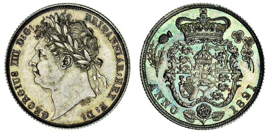 George IV (1820-30), Shilling, 1821, laureate head left, rev. crowned garnished shield (S.3810), good extremely fine, with lustre and light toning