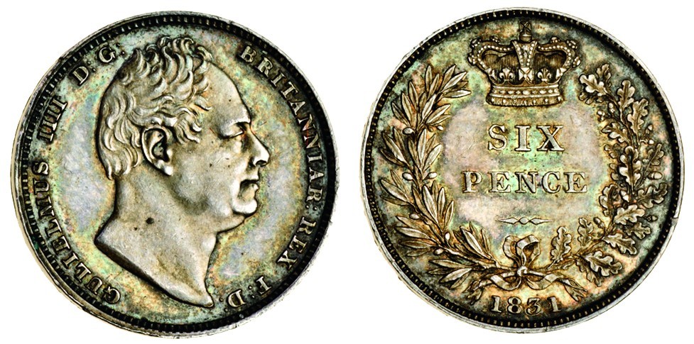 William IV (1830-37), proof Sixpence, 1831, bare head right, rev. inverted die axis, crowned value within wreath, date below, edge plain (ESC 1672; S.3836), toned, extremely fine