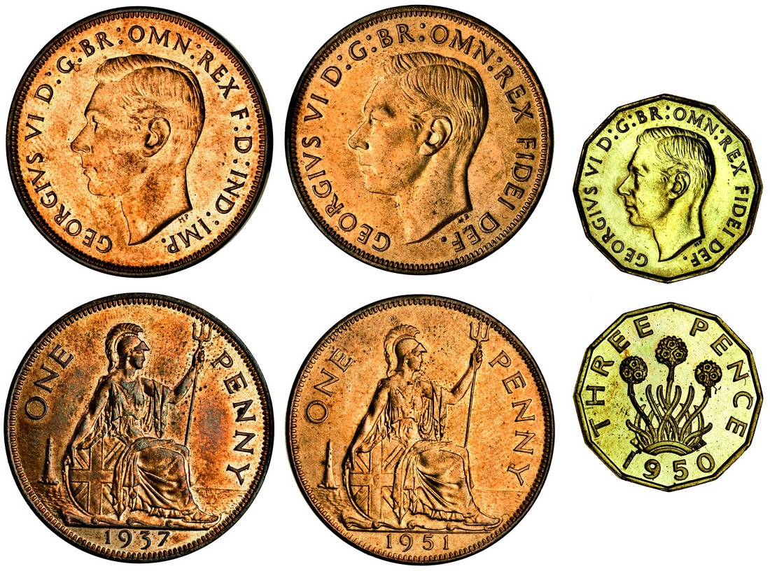 George VI (1936-52) (3), proof brass Threepence 1950 (Peck 2371; S.4112), full brilliance, as struck, proof Pennies (2), 1937 (Peck 2401; S.4114), 1951 (Peck 2423; S.4117), both uncirculated (3)