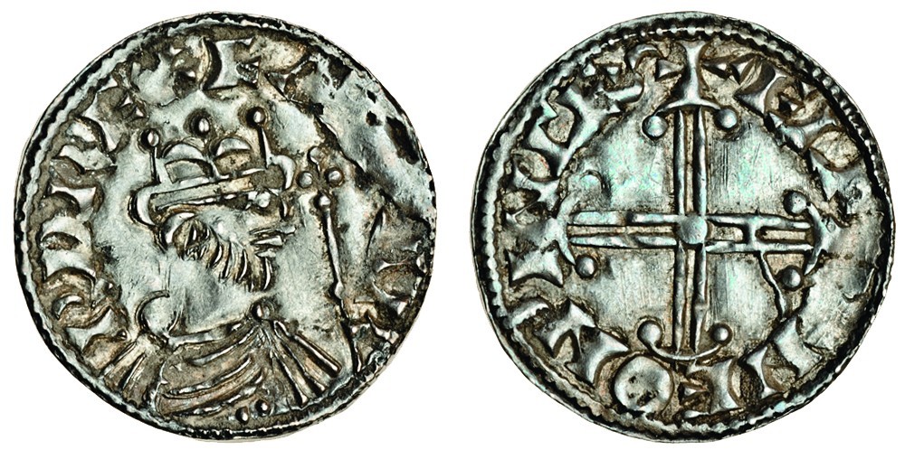Edward the Confessor, Penny, 1.31g, hammer cross type, Chichester, Aelfwine, +eadparrd re, crowned bust right with sceptre, rev. aelfpine on cices, short cross voided, each limb terminating in an incurved segment of a circle (N.828; S.1182), obverse die flaw, old collection tone, pleasing very fine